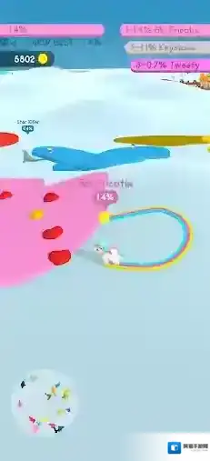 2、通过灵活的走位和策略的操作来圈出更大的领地,不断扩展你的颜色,赢下比赛获得丰富奖励。